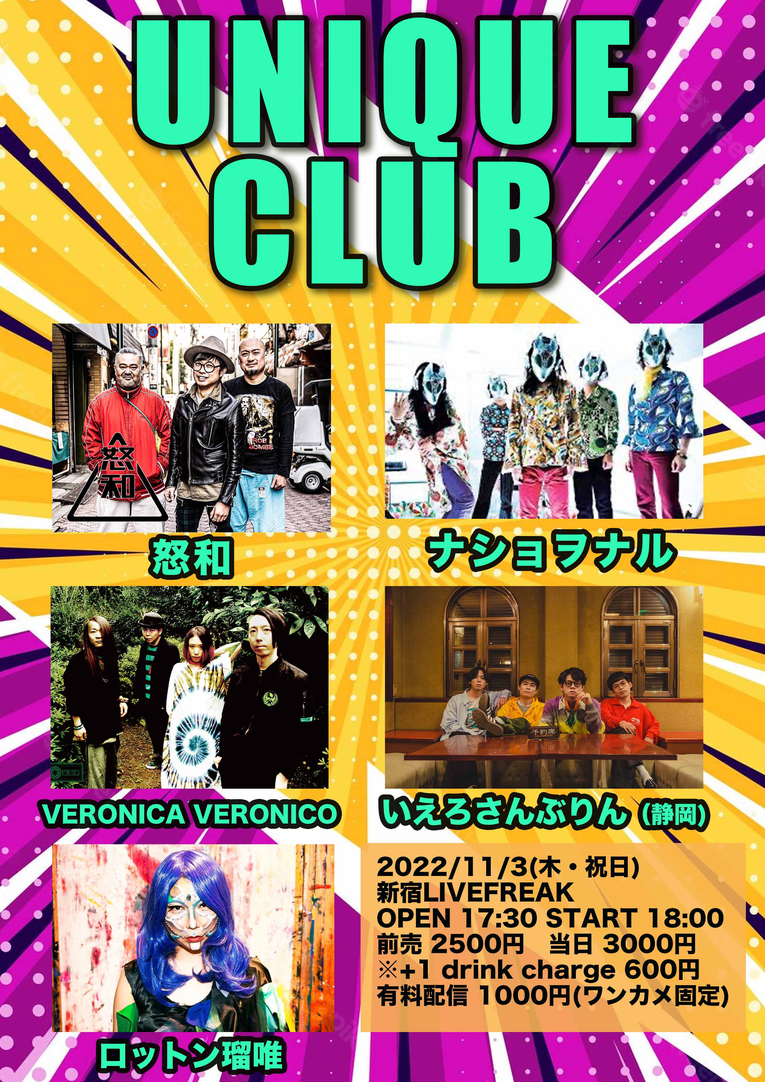 ADV:¥2,500 / DOOR:¥3,000 (+1Drink)